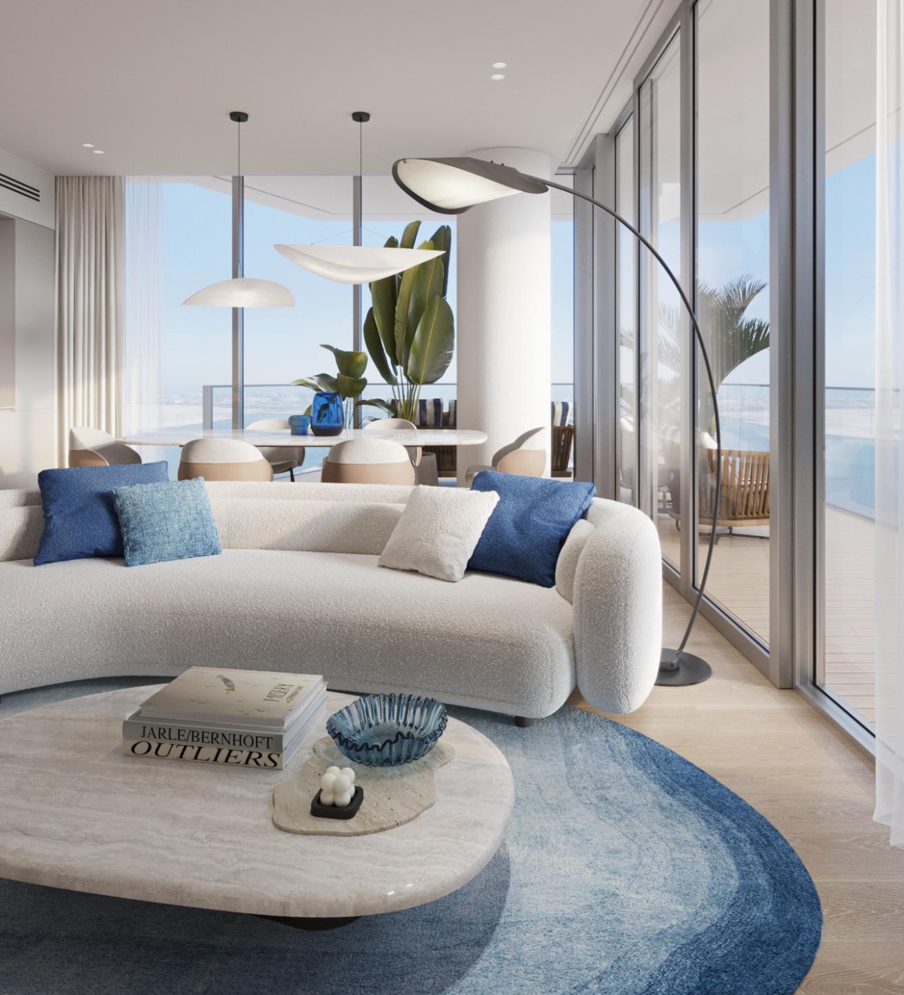 The architectural design of Riviera Residences embraces symmetry, light, and flow — creating a harmonious balance between form and function. The residences are crafted with high-end finishes, natural tones, and large glazing that frames sea and skyline views. Each interior space emphasizes comfort and sophistication, reflecting the serenity of its waterfront surroundings.